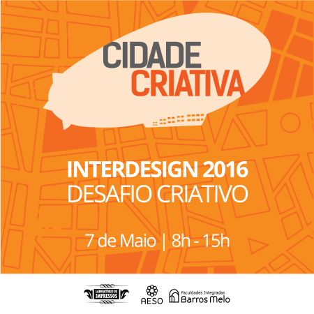 Temas de relevância social, abordagens contemporâneas, pensar fora da caixa, soluções alternativas. Essas são palavras que irão compor mais um InterDesign 2016, evento multidisciplinar anual, promovido pelo curso de Design Gráfico. Com o tema “Cidade Criativa”, o evento acontece no Laboratório de Informática das Faculdades Integradas Barros Melo (AESO), dia 07/05, às 9h. As inscrições devem ser feitas clicando aqui.